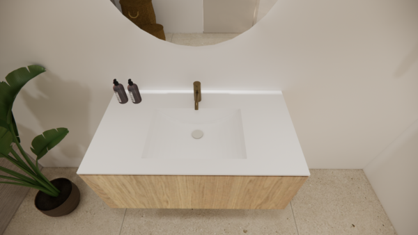 Compacte lavabo in Himacs CB483. Beschikbaar als enkel of dubbel model, met of zonder kraangat.
