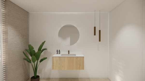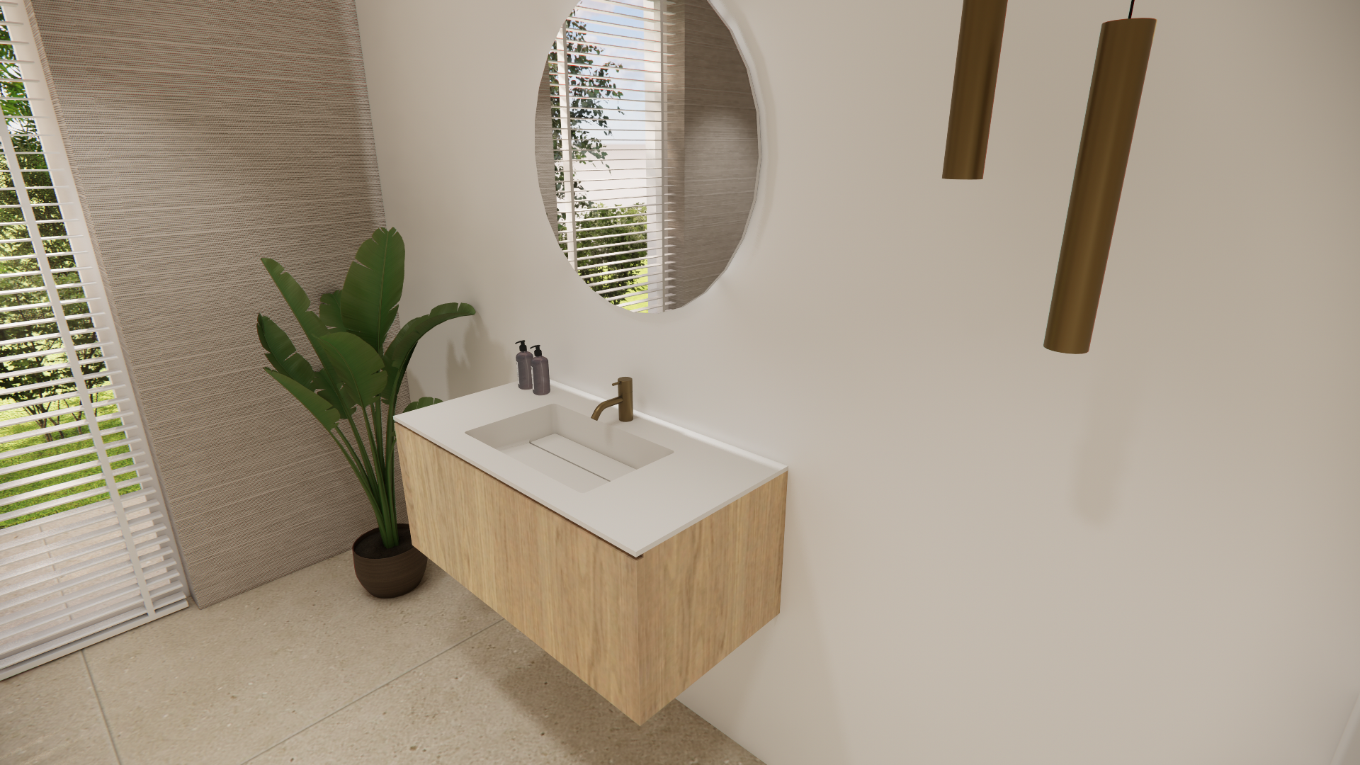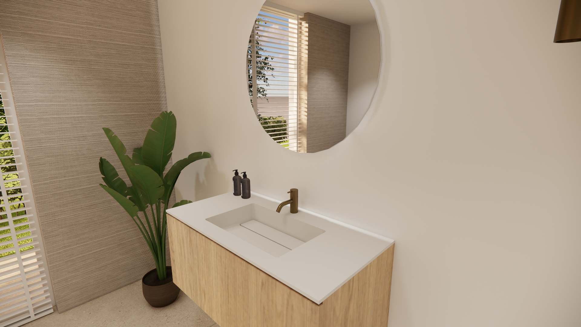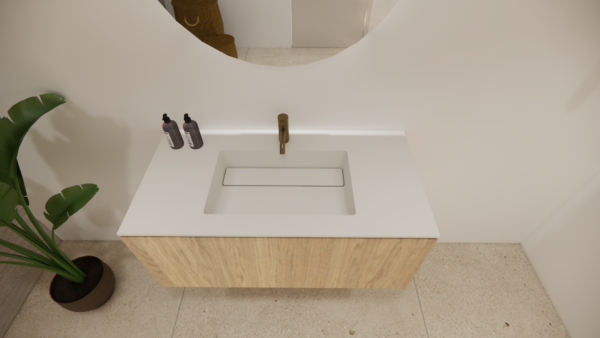 Minimalistische lavabo in Himacs CB4530. Beschikbaar als enkel of dubbel model, met of zonder kraangat.