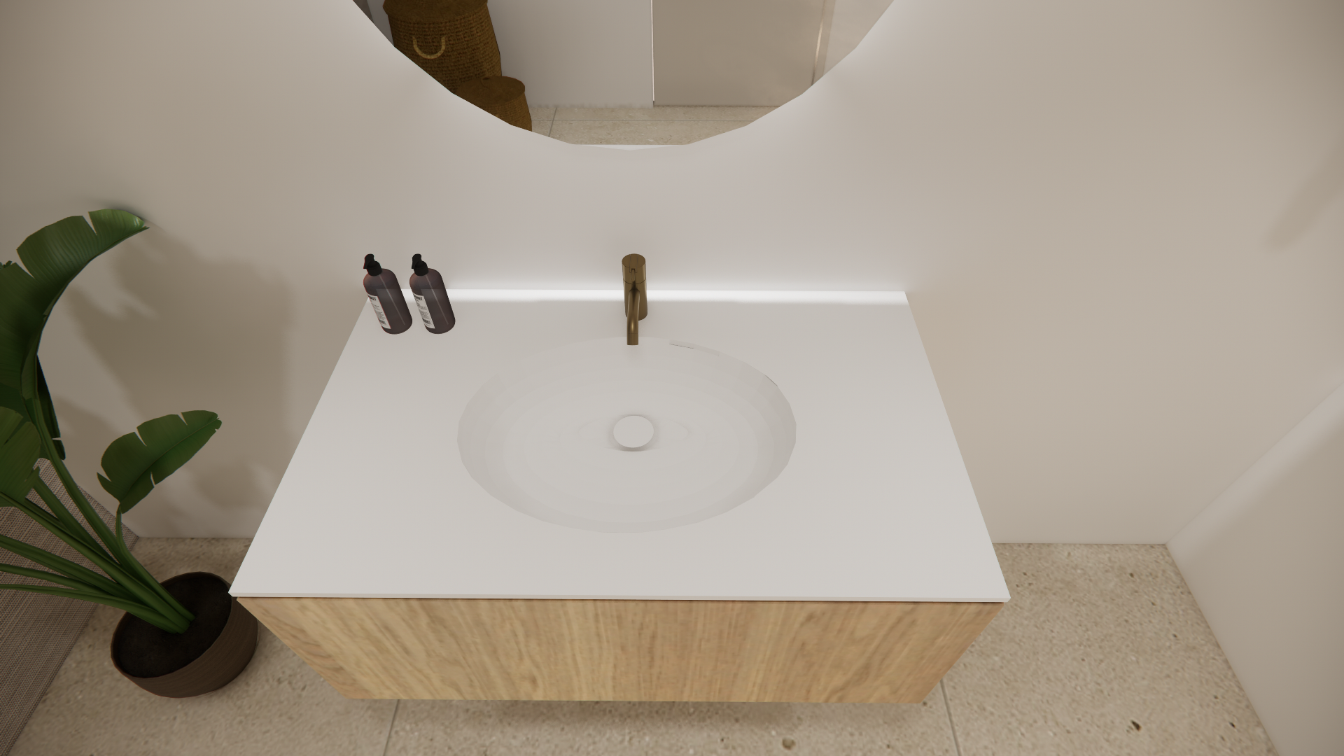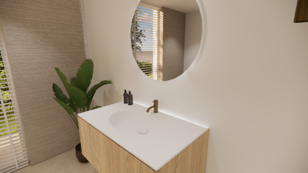 Serene lavabo in Corian Calm 815. Beschikbaar als enkel of dubbel model, met of zonder kraangat.